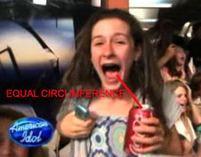 A young greeter demonstrates her uncanny ability to unhinge her lower jaw when cheering for her Idol, thereby increasing her scream volume by 20 decibels