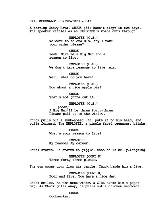 One-Page Screenplay: Greg Marcks' Suicidal at McD's