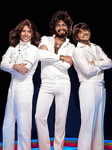 · This is the first we've seen of a People promotional shot of the Entourage gang dressed as the Bee Gees. (Cut for space was Kevin Dillon dressed as a fairly passable Yvonne Elliman.) Apparently there's been some controversy with the shot, as E has accused Vinnie of having stuffed his pants with Lloyd.