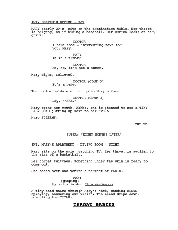 One-Page Screenplay: TS Faull's THROAT BABIES