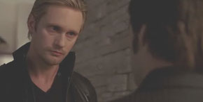 Eric pops by Lafayette's place to offer him some of his own blood to heal his gangrene-infected leg. Eric says he's doing it for Sookie. Hmmm....Eric has a thing for Sookie! Vampire love triangle!
