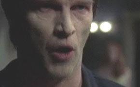 In Dallas, they elicit information from the limo driver using their vampire mind tricks -- they were set up by Fellowship of the Sun. Eric confirms as much over the phone as a newly rehabilitated Lafayette recreates the famous ottoman YouTube video in the background. Eric meets Bill in Dallas, and reveals his allegiances to Godric -- an ancient vampire who is supremely powerful, whom he hopes to rescue from human clutches. At Sookie's, Sam tries to tell his new waitress girlfriend with the ridged back his flea-bitten secret, but she stops him before he can and says she knows what he is.