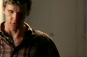 It's after dark at the Fellowship of the Sun Empowerment Getaway, and Jason steps in the bunks and is horrified to discover all his fellow Circle Squarers massacred by vampires. He's tackled by Jealous Luke, who pretends to be a vampire, and a defiant Jason says, "Fuck you," to which Luke says, "That can be arranged." So I guess that means Luke Pretending to be a Vampire is a Power Bottom. Once the lights come up and Jason realizes it was all a set-up, he punches Luke in the face -- breaking his nose in the process -- and declares, "Vampires are NOT a JOKE!" (I beg to differ: Q. What is a vampire's favorite fruit? A: A necktarine!) A newly hard-line Jason starts speaking in George W. Bush-esque terms of being either with him or against him when it comes to The War on Vampire.