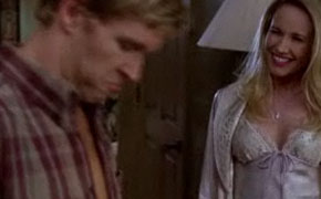 Back at Bill's Shabby Chic Emporium, he stumbles upon Jessica the Sulky Tween Vampire, who's hooked up with a Tranny-chaser (short for Transylvanian-chaser, or vampire fetishist). This angers him greatly, as the only one going to have mixed-race hot sex under his roof is Bill! The Tranny chaser leaves without a fight, but clearly has feelings for Jessica as he walks out. Jessica tells Bill she'd never kissed a boy before, giggles, then runs up the stairs for some reason. Sookie then delivers some very unconvincing dialogue about how much she's growing to like Jessica, and suggests bringing her along on the trip to Dallas. Bla ba boring conversation about bridging the gap between vampires and humans. Get over it! You shop at Loehmann's, you're basically human. Bill finally breaks down and orders a second coffin for Jessica, which pleases Sookie to no end. Yay! Third wheel on their first vacation. Who wouldn't be psyched?