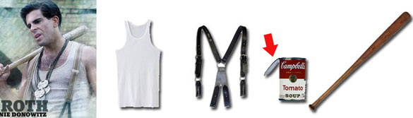 Any character called "The Bear Jew" instantly jumps to the head of the costume pack, as far as I'm concerned, and Roth's Nazi-bludgeoning hunting champ certainly seems easy enough -- and more importantly, comfortable enough -- to pull off all night. Stuff your pockets with crusty, wadded-up Kleenex for extra verisimilitude.