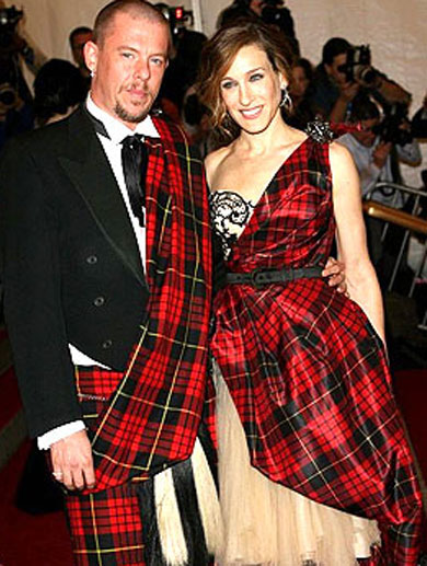 Sarah Jessica Parker and McQueen shared a longstanding friendship and creative partnership (he made the clothes, she wears them). Here, the two wore matching tartans at the Costume Institute AngloMania Gala at New York's Metropolitan Museum of Art in 2006.