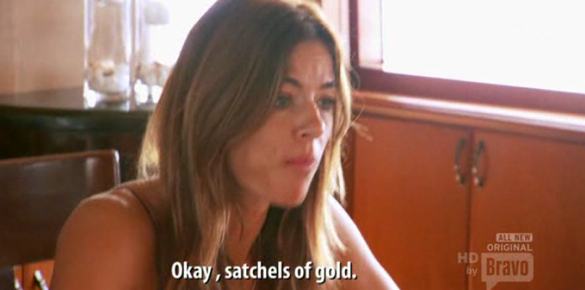 · After Bethenny said, "No one knows what you're saying," Kelly responded, "Okay, satchels of gold, to everyone's confusion.