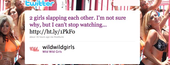 In this installment of "How Desperate are the Marketers of Piranha 3-D Today?", let's browse the Twitter feed belonging to Derrick, the soft-core porn impresario (and Piranha 3-D perv) around whose Wild Wild Girls empire the film's viral campaign is based. And I do mean "viral," because this is the kind of stuff that makes you wish you had some antibiotics lying around.