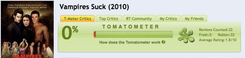I never listen to critics. They always overrate bad movies and underrate good ones. I haven't seen Vampires Suck yet, but I've heard it was hilarious, and I'm going to go see it whether rotten tomatoes likes it or not.