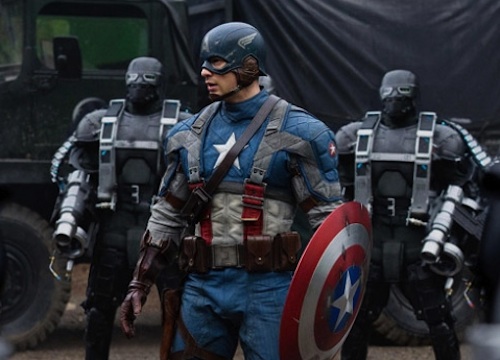 · I know what you're thinking: Where are Chris Evans' enhanced muscles? Not in this exclusive first look of Captain America: The First Avenger in EW, that's for sure! Click ahead to see the full image and stick around for more Buzz Break.