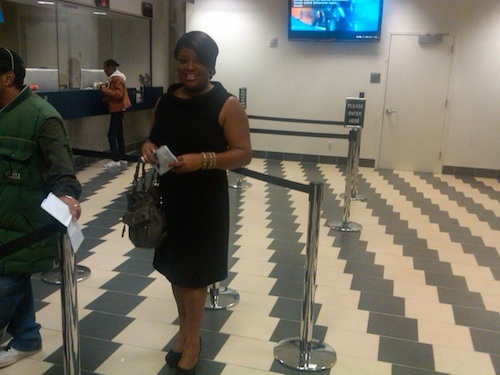 · What to say about this picture of Sherri Shepherd standing on line at ConEd, waiting to pay her bill, except: What the hell is Sherri Shepherd doing standing on line at ConEd, waiting to pay her bill? It's called the Internet, Sherri -- or, failing that, the telephone. THERE ARE OTHER WAYS TO PAY BILLS! Ahem. Click ahead to see Sherri mixing it up with the commonfolk and stick around for more Buzz Break.