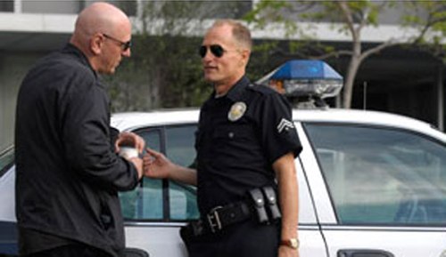 Here's a new picture of Woody Harrelson on the set of Oren Moverman's (The Messenger) upcoming film Rampart, which examines corruption in the LAPD during the 90s. Ironically, the outspoken environmental activist and marijuana enthusiast actually looks pretty great as a cop. Check out the picture after the jump and help us figure out what offense made Harrelson pull over and step out of his car.