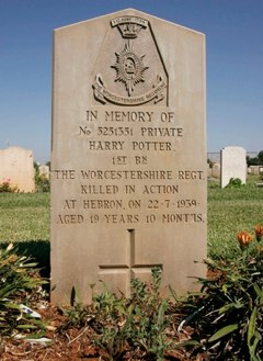 · Just in time for the beginning of the end of the Harry Potter film franchise, someone has publicized the grave of one Harry Potter, a British soldier killed in action in 1939 and buried in the rural town of Ramle, Israel. Cue the exploitation: "There is no connection with the Harry Potter we know from literature, but the name sells, the name is marketable," said one local tour guide. Sure -- but do they sell butterbeer? [AP]