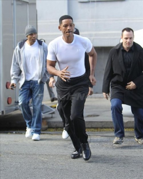 Some photos from the set of Men in Black 3 have surfaced, and everyone in the film looks a bit confused. Take this photo of Will Smith in action: Does he look so perplexed because he has no idea what kind of computer-generated alien will be chasing him in the final product? Or is there just a general air of uncertainty because they are shooting without a finished script? Take a look and caption away!