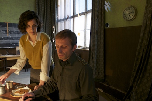 Well, your first look that doesn't include some mystery Rachel Dratch lookalike. Favorite Hungarian newspaper Vasarnapi Hirek had a story about Angelina Jolie's controversial directorial debut in its pages this weekend, including a first look at stars Zana Marjanović and Goran Kostic. Said Jolie: "It's shot in color, but it could transfer to black and white. We haven't decided that." Also undecided: Whether or not the film will be released in English. Start pre-ordering your tickets now! Or just click ahead and check out the very ultra-serious image.