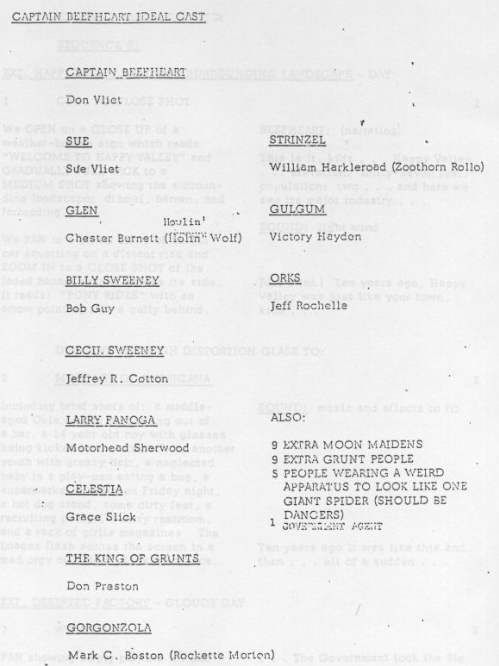 Check out 58 Pages of the script at The Captain Beefheart Radar Station.