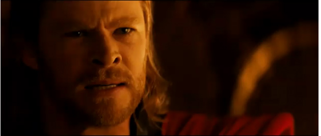 The first few seconds of the trailer give a quick summary of how Thor gets cast out of Asgard and sent to earth. There are a few shots of flying hammers and exploding rocks that were not present in the last trailer, but both trailers already have plenty of that. What's really interesting here is Thor's reaction to getting banished, which probably serves as the best showcase of Hemsworth's acting in either trailer. To wit: