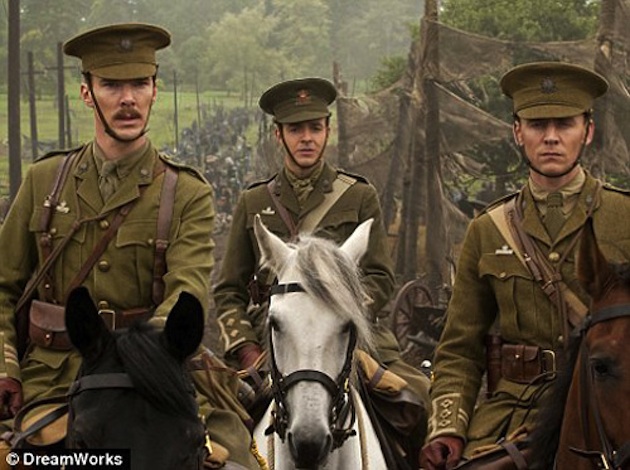 When Movieline last checked on Steven Spielberg's War Horse, it was to show you pictures of the director and some horses. Now that the first official still from the highly anticipated second half of Spielberg's 2011 double-bill has been revealed (Spielberg's The Adventures of Tintin hits theaters days before War Horse in December), it appears so, too, has the "war" portion of War Horse. At least in the form of three frowning British officers.