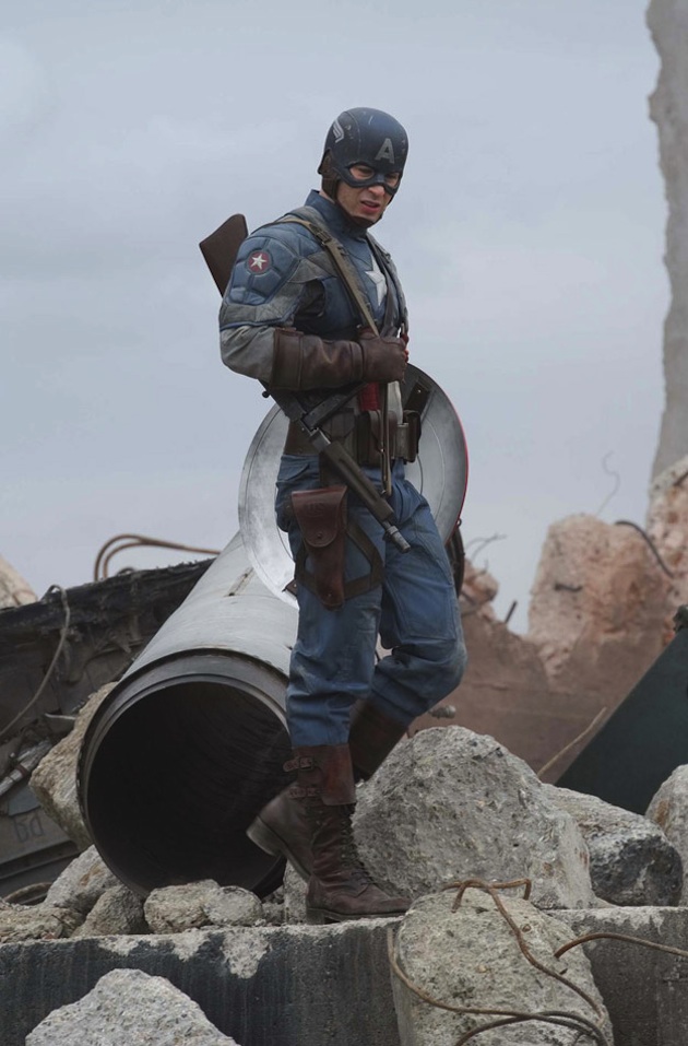 · You know how some superhero costumes are sleek and sorta badass? Not Captain America! The latest photo from the Marvel summer tentpole has arrived -- expect a new trailer to follow shortly -- and it highlights the clunky aspects of Cap's costume. Doesn't Chris Evans look like he's wearing long underwear under that thing? Click ahead to judge for yourself, then stick around for more Buzz Break.