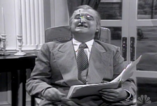 Meanwhile, in a long forgotten sketch in the third show of the fifth season titled "The Continuing Correspondence of Eleanor Roosevelt" -- which had to do with Eleanor Roosevelt's outstanding grocery store bill (even in the heyday of SNL, they weren't all winners, folks) -- Murray was once again passed over for FDR, this time by featured player Harry Shearer.
