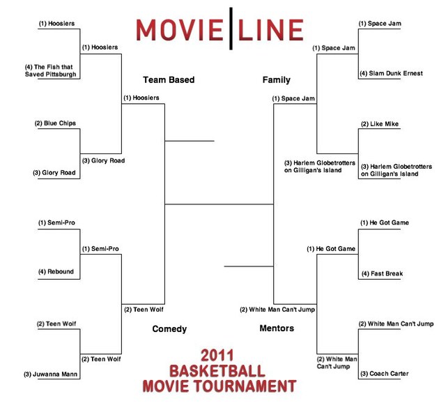 What started with 16 basketball movies is now down to a precious final four. Yesterday, you voted and, frankly, it wasn't even close. That's not to say that there weren't upsets -- two number one seeds were vanquished! -- but it's evident that you really like these films. Which will play in tomorrow's championship game? Well, that's up to you! (Sorry: Write-in votes for Juwanna Mann will not be considered.)