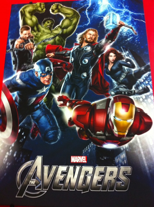 Between now and the release of The Avengers on May 4, 2012, there will be plenty of posters, trailers, clips, spoilers, and featurette to sate the rabid Marvel fanbase. This camera phone picture of some promotional art for the Joss Whedon-directed film taken at the Licensing International Expo in Las Vegas doesn't really qualify, but it does feature a cartoonish look at your favorite Avengers, assembled. Hey, cartoon Mark Ruffalo-as-Hulk! Click through for a first look.