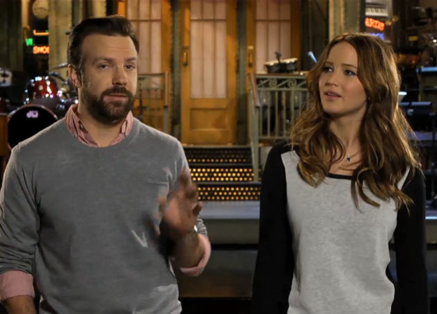 The promo bits are hit and miss — spoofing awards season with Jason Sudeikis, Lawrence at least nails the giddy awkwardness of getting up on that podium only to be played off by the orchestra, amirite Daniel Day-Lewis? — but it's promising enough just to see her mugging for the laughs. Here's hoping once that Silver Linings Oscar is on her mantle she'll tackle some comedies. Actual real comedies that grown-ups might want to watch! Now there's an idea.