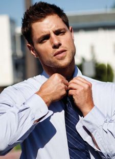 · Sam Page, the actor who plays Joan Holloway's sexually abusive husband with "no brains in his fingers" on Mad Men, claims that he's not such a bad guy in real life. Take note of the photographic evidence in August Man magazine -- there's a photo and more Buzz Break after the jump.