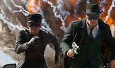 And you thought Jonah Hex had bad buzz. The stink around The Green Hornet is of the unreleasable variety, this despite coming from the fertile and imaginative minds of director Michel Gondry and screenwriters Seth Rogen and Evan Goldberg. Long since bumped from its July 7 release date to the more bomb-friendly January 14, 2011, there have been scant peeks of what to expect from this amalgam of superhero origin, 3D and -- presumably -- paper mache... until now! After the jump, help Movieline caption the first two images from The Green Hornet. Creativity awaits!