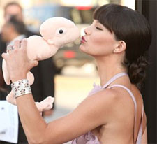 We all know what the Muppets did for Joe Biden, but what might a wincingly cute monster doll do for the new thriller Splice? How about making it the most adorable bloodthirsty genetic freak in movie history? Seriously, as evinced by actress Delphine Chanéac at this week's Los Angeles premiere, nothing beats a well-placed plush mutant -- particularly one that grows up to become perhaps a little too intimate with its creators/default parents. Even Robert Downey Jr. showed up, and he was the second cuddliest creature on the carpet. OK -- third cuddliest, after Joel Silver and Dren the Plush Monster. Where's mine, Warners? [IMDB]