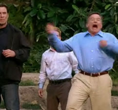 The first trailer for Disney's upcoming Old Dogs, pairing Robin Williams and John Travolta as gay dads to Seth Green who learn they have two newborns from a previous gay marriage (or something -- I admit I was simultaneously paying some bills online while watching it), was hampered a bit by the old trailer pitfall of giving away too much, too soon. We have Williams, we have Travolta, and we have Green -- why get bogged down in the details?