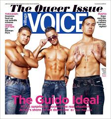 Three of Jersey Shore's leading juiceheads, Ronnie, The Situation, and Vinny, stole the spotlight from Snooki on the newest Village Voice cover. Sounds ideal for the trio, right? Particularly since Ronnie and Vinny may be kicked off the show? Turns out the dudes may not have won the exposure they bargained for, as the new edition of Village Voice is also the "Queer Issue." According to the NY Post, the gents didn't know they were being used to illustrate a story about "the Jersey Shore on the down-low." Racy! Before the umber lads start to get huffy, we advise they try something new with their connection to gay culture: Own it.