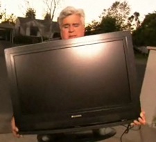 Jay Leno escaped his Burbank studio during last night's Tonight Show and used his freedom to...help his neighbors out with everyday household chores. Meanwhile, Craig Ferguson wrestled some personal answers out of In Treatment star Debra Winger, Stephen Colbert interviewed two music icons and Jimmy Fallon exchanged kisses with Diane Lane.