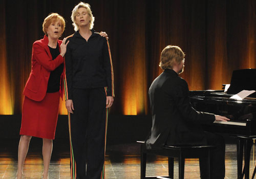 Perhaps all that Glee needed to do was to get a couple pros in the show to get it back on its feet. After Gwyneth Paltrow classed up the joint last week, Carol Burnett shows up on Tuesday as Coach Sue's mother. And now you can hear them duet on Ohio from the musical Wonderful Town. And if you ever thought Rosalind Russell should have slipped in a few references to hunting Nazis in the the original, well then, you are in luck my friend. And speaking as a former Ohioan, it certainly gets my Buckeye seal of approval. Listen after the jump!